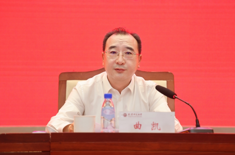 曲凯对今年以来学校各项工作取得的阶段性成效予以肯定并对全体教职员工的辛勤付出表示感谢。他指出,面对新时代新征程,学校既身处新一轮“双一流”建设攻坚冲刺的重要关口,也迈入了跻身一流师范大学行列的战略爬坡期。他强调,要强优势、补短板、抓机遇,全面夯实高质量发展根基。既要看到成绩,坚定发展自信;也看到挑战,增强战略清醒;还要看到机遇,提振奋进动力,以更开阔的视野整合资源,以更科学的理念谋划路径,力争在人才培养、学科突破、科研创新等领域实现整体性跨越,为学校高质量发展注入强劲动能。要砺本领、勇担当、善作为,全力开拓一流建设新局。要强在深处,发挥党建引领作用,将党建优势转化为推进学校高质量发展的优势;谋在远处,注重系统集成,以超前的战略思维,科学编制学校“十五五”发展规划,巩固拓展高质量发展良好态势;抓在要处,聚焦“一流学科”建设、高水平科研等关键环节精准发力,推动学校发展整体跃升;行在快处,抢抓发展机遇,锚定目标任务,紧抓快办,善作善成;做在实处,秉持师生为本,做好民心实事,以建设幸福师大凝聚追求卓越的广泛共识与内生动力。要抓落实、求实效、固根本,全程淬炼攻坚克难锐气。涵养“学”的习惯、强化“进”的态度、提高“落”的能力、保持“严”的基调,持续巩固深入贯彻中央八项规定精神学习教育成果,进一步激发干事创业热情,为加快建设特色鲜明、世界知名的一流师范大学汇聚磅礴力量。