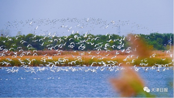 如何保障这些迁徙候鸟能够在七里海“驿站”吃得饱、休息得好呢?七里海湿地自然保护区管委会主任田秀静现场答疑解惑:为了迎接大批候鸟的迁徙过境、确保食物充足,七里海湿地自然保护区的工作人员半年前就进行了保育放流,投放鱼苗虾苗22万尾,还有3750万尾河蟹苗。近日,工作人员又对保护区内的水域蓄水量进行了调控,深水区满足游禽游弋,浅水区适合涉禽觅食。《七里海湿地生态保护修复规划(2017—2025年)》,明确了将七里海湿地打造成全国湿地生态修复样板、国际知名鸟类栖息地与国际古海岸湿地科普教育基地的目标。田秀静介绍,今年以来,七里海湿地自然保护区突出发展以科考、科普、科研为主要内容的研学活动,宣传湿地保护知识、推介自然保护区公益科考项目。前不久,七里海湿地自然保护区管委会利用东海水库清淤固堤工程,对库区鱼类进行了科学间捕,随后将其中的鲢鱼、鲤鱼等大鱼进行了公益拍卖,拍卖所得近180万元资金全部用于湿地生态保护。七里海湿地自然保护区东海与西海,以潮白新河为界。毗邻西海的七里海大道人行过街天桥,作为湿地保护区附近的制高点,兼具观景台的功能。“你们看,远处那一片水域,曾经是七里海湿地公园的观光栈道,早就拆除了,如今被芦苇海所覆盖。”站在天桥上,向北眺望七里海湿地,宁河区委书记白凤祥深有感触地说,“七里海确实是一块‘金字招牌’,我们不能守着‘金饭碗’过‘穷日子’,但也不能为了过‘富日子’而毁了‘金饭碗’。保护好生态环境是‘国之大者’,七里海不仅是宁河的生态地标,也是天津的生态明珠,更是美丽中国的生态品牌。这些年,我们始终牢记习近平总书记对七里海湿地保护的重要批示精神,坚持生态立区,算生态账、产业账、民生账。同样一片‘海’,不一样的靠‘海’吃‘海’,我们今天捧起‘金饭碗’,吃上‘生态饭’。”京津冀生态文明发展研究院执行院长、国家重点研发计划项目首席科学家武建军教授在接受记者采访时表示,中国式现代化是人与自然和谐共生的现代化,必须牢固树立和践行“绿水青山就是金山银山”的理念,站在人与自然和谐共生的高度谋划发展。七里海湿地不仅生物多样性丰富,而且是京津冀地区温度、湿度、空气和水质的最好调节器,在改善空气质量、调节气候、涵养水源、净化水质以及维持自然生态平衡方面发挥着至关重要的作用。保护修复七里海湿地,是保护自然环境的客观要求,对深入推进京津冀协同发展具有重要战略意义。一组数据晒出了七里海绿色家底: