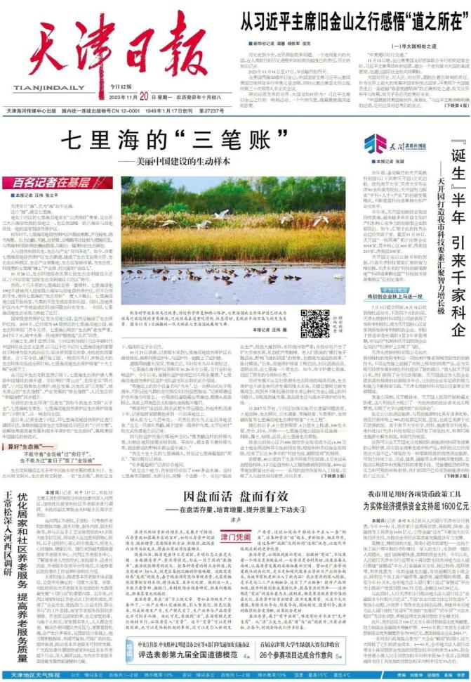 随着七里海的生态红利不断释放,宁河区涉农产业竞争的焦点从传统农业生产转换到了绿色农业、品牌农业、“芯片”农业的赛道上来。宁河区拥有全市首个国家现代农业产业园。近年来依托产业园龙头企业,宁河区推动米上牌、蟹上环、猪上市,目前有市级知名农产品品牌19个、“津农精品”品牌20个、农特产品40余个。在换新水产、天祥水产、原种猪场等“国字号”良种场带动下,建立起种稻、种猪、种鱼、种蟹、种苗5大种业产业集群,预计到2025年,种业年产值将达到10亿元。毗邻七里海生态廊道,产业发展自带绿色基因。七里海湿地自然保护区以南10公里,是天津未来科技城。这是同北京、武汉、杭州并称的全国四个未来科技城之一。宁河现代产业区是未来科技城六大组团之一,目前已经形成了智能制造、生物医药、汽车零部件、新能源、新材料、航空航天等6大主导产业。“产业区对入驻企业拉起了生态红线。高耗能、高污染、技术落后、效能低下的项目一律被设为红灯项目,利税再多也坚决不允许入驻。同时,产业区通过发展新兴产业,推进重点企业节能降碳技术改造等,全方位构建绿色低碳循环产业体系。”宁河现代产业区管委会主任闫伟说。天津泰正机械有限公司是一家专业研发汽车零部件的高新技术企业。2021年,该企业在宁河现代产业区布局新能源领域项目,新建的生产基地和研发中心今年10月正式投产。“产业区发展定位与我们不谋而合,园区形象与企业形象直接关联,生态门槛提升了我们的企业品质形象,这也是我们选择落户宁河现代产业区的重要原因之一。”天津泰正机械有限公司副总经理任静说。立冬过后,天气渐冷。在七里海大道以南,计划总投资约122亿元、规划总面积5.15平方公里的“小七里海”项目正在热火朝天地建设中。这个项目计划用5年时间建设芦苇洲公园、稻香美村、低碳绿坊三大板块,推动宁河区“绿水镶金边儿”工程提质升级。算好“民生账”——生态红利不断释放,家门口的“幸福不动产”随处可见环境就是民生,青山就是美丽,蓝天也是幸福。良好生态环境是最公平的公共产品,是最普惠的民生福祉。一笔“民生账”,算的是绿色生活方式,算出的是人与自然和谐共生的生态福利。生态好,生活才更好。这些年,从“求生存”到“求生态”,从“盼温饱”到“盼环保”,人民群众对优美的生态环境有了更多期待。秋日的暖阳照在兴芦公路上。记者从七里海湿地自然保护区管委会驱车前往俵口镇兴家坨村采访。道路两侧的太阳能路灯、村口的生活污水集中处理站、村边河塘中畅游觅食的水鸟、村子里参天的百年古树、院落旁的垃圾分类投放箱,一幅新农村绿色生态图景展现在记者眼前。由于与七里海湿地接壤,前些年,村里的“能人”承包水面养鱼养蟹、建起了水上游乐项目、办起了农家乐,钱是赚了,但生态却遭了殃。“生活垃圾到处都是,河里的水都是臭的,小鱼小虾全都不见了!”提起当年,村民们连连摇头。从2018年开始,一条生态红线穿村而过,兴家坨村发生了翻天覆地的变化。七里海湿地要修复,村民的生活环境也要改变。聊起村里这些年的变化,村党支部书记、村委会主任马全胜打开了话匣子,掰着手指头如数家珍。“结合农村人居环境整治,村里铺设地下管道,建设污水集中处理站,取消土暖气,用上清洁能源,兴家坨村实现了从‘脏乱差’到‘生态美’的大变样。”“村民最受益的还是‘厕所革命’。如今,旱厕在兴家坨村已彻底成为历史。”“旱厕改水冲,不稀奇呀!”记者插话道。“不完全是那么回事儿。我们用的是负压式厕所,跟高铁上的一样!”马全胜拦了记者的话,很是自豪地说,“按钮一按,直排村外污水集中处理站。液体部分经过净化处理,可以达到国家规定的Ⅲ类水质、准入河道标准。固体部分经过加工成了有机肥料。”“在村口确实看见了一座污水处理站。”记者说。“那是其中一座,村子周边一共有两座污水集中处理站,能够满足全村的污水处理需求。”马全胜回应。目前,宁河区已经建成京津冀地区规模最大的农村真空负压污水收集系统。生活因生态而改变。兴家坨村村民杜云春今年67岁,生态红线划定后,他家里的4亩耕地全部流转了出去,每年拿流转费。杜云春还当上了村里的保洁员,他跟记者粗算了一笔账,不用种地了,这两年反而比以前收入更高。每亩地1000元的流转费,再加上当保洁员的工资,年收入比之前种地还多两万元。“我们兴家坨人,幸福着呢!” 杜云春冲着记者喜滋滋地说。幸福生活也不仅仅是在兴家坨村。11月3日,一股冷空气来袭,津城气温普遍下降。记者来到潮白新河畔的洛里坨村,走进村民李树安家的院落,宽敞的农家小院收拾得干净利落。“冬季取暖,咋办呢?”“现在都是燃气入户,取暖、做饭都靠天然气。”说着话,李树安把记者让进屋。门口墙壁上有一个天然气炉热源控制箱,沿着墙边是一组暖气片,暖气管连接每间屋子。“我家一共70平方米,冬天每月取暖费大约300元,挺合适的。清洁能源不仅让空气质量好,咱自家屋里还干净呢!”目前,宁河区已经基本形成了清洁能源集中供热体系。其中,城区及潘庄镇、造甲城镇居民楼热电联产占比96%、燃气占比0.8%、地热及其他占比3%。今年入冬前,当地政府部门还对七里海湿地自然保护区周边村落的老旧管网和燃气站