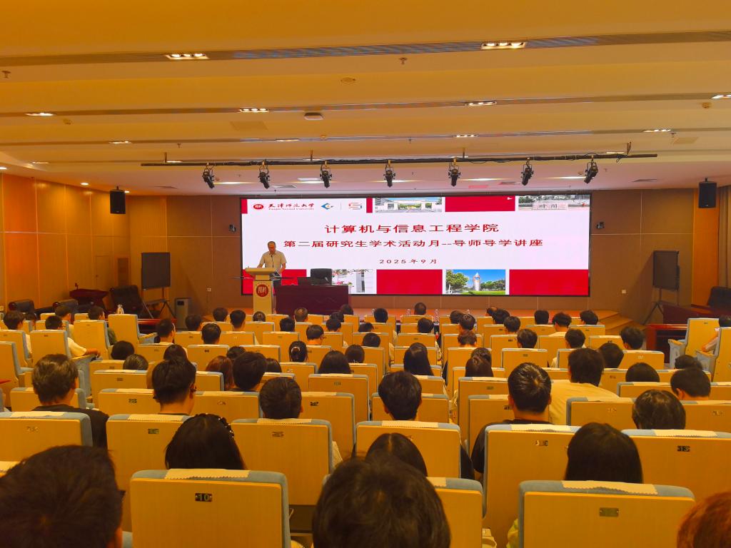 本站讯(通讯员 韩笑旭)为激发研究生学术创新活力,助力2025级新生融入科研氛围,在研究生院支持下,9月15日,计算机与信息工程学院举办了“第二届研究生学术活动月”首场导师导学讲座,邀请国家超级计算天津中心总工程师冯景华博士作题为“算力创新 产业赋能”的专题报告。计算机与信息工程学院党委书记刘锋、院长赵子平、副院长朱远平,教师代表及2025级全体研究生参加活动。