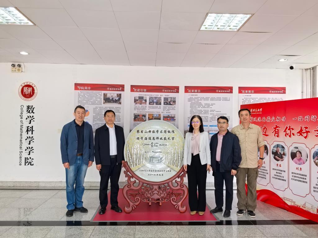 纪德奎对徐岩教授来校表示热烈欢迎,他向徐教授介绍了学校发展历程以及近年来在教学、科研、人才培养等方面取得的成就,并就数学师范教育人才培养、学科建设发展、数学与其他学科交叉融合以及如何进一步推动学校包括数学学科在内的基础学科高质量建设发展等问题与徐岩教授进行了交流。徐岩教授充分肯定了学校学科发展的显著进步,也为数学科学学院学科建设与科学教育如何更好地融合发展提出了具有前瞻性的意见建议。学校校友服务与管理中心向徐岩校友赠送了校徽。